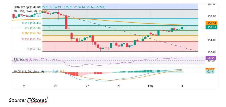 The Japanese Yen has been witnessing increasing pressure for the last four days as compared to its American counterpart. On Wednesday, Yen dropped to a four-week low, and as a result, the USD/JPY pair dropped to nearly 156.00s. This drop is primarily attributed to Japan’s current financial health under Prime Minister Sanae Takaichi’s expansionary spending policy and political uncertainty before the snap election on 8th February.